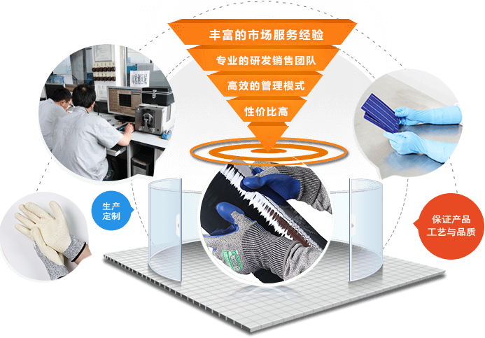 手套芯采用凱夫拉材質(zhì),經(jīng)權(quán)威機(jī)構(gòu)檢測(cè)屬于5級(jí)防割標(biāo)準(zhǔn),針織采用無(wú)縫針織,針織密度高,防止硅粉及金屬碎屑進(jìn)入手背,手掌涂層采用壓紋設(shè)計(jì),具有良好的減震功能,手套制作完成以后經(jīng)過(guò)6次清洗工藝處理,經(jīng)權(quán)威機(jī)構(gòu)檢測(cè)表金屬雜質(zhì)低于45PPBW.